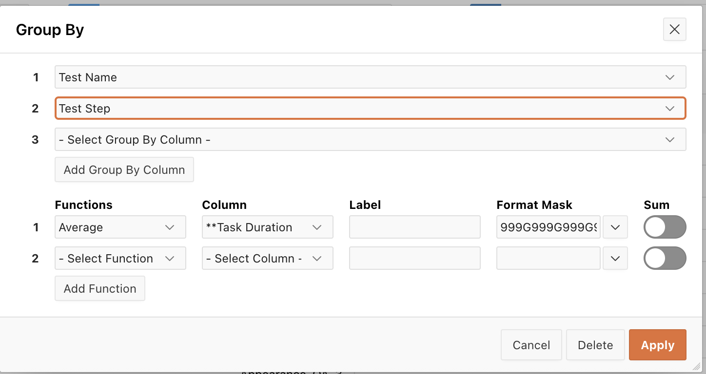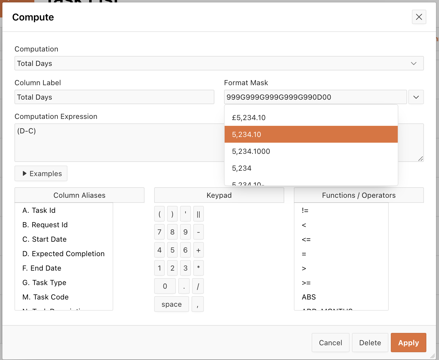 - Customisation: you can define the column heading and Format Mask the computation formula