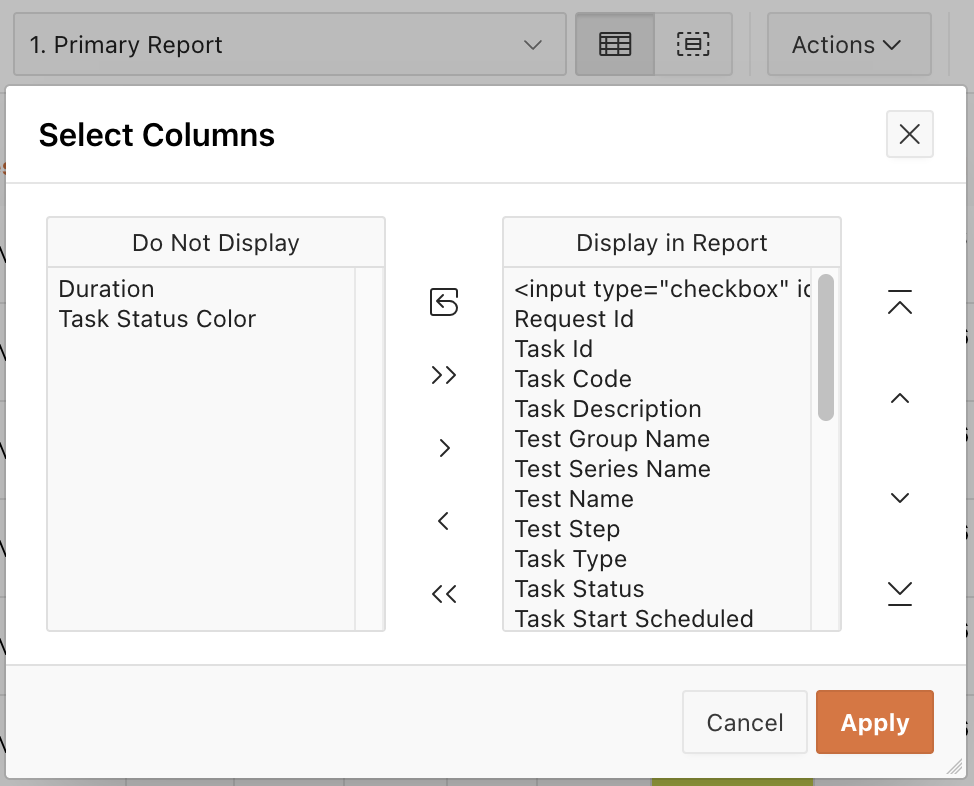 To return to the original primary report, click the table icon next to the new report name, or scroll through the list of reports and select the primary one.