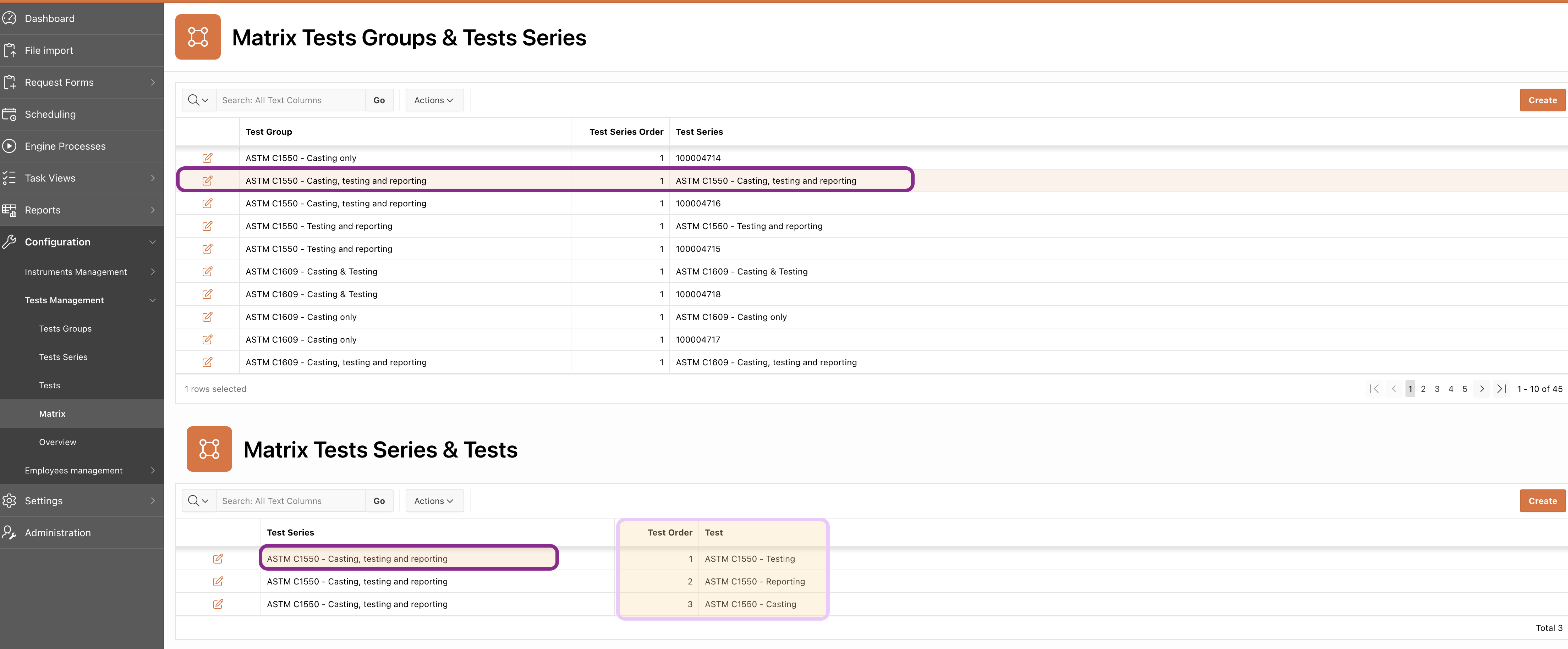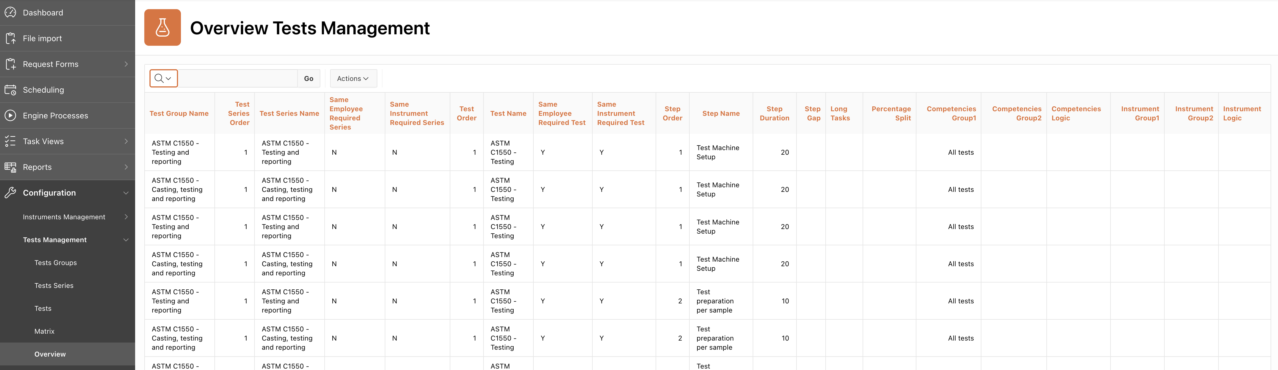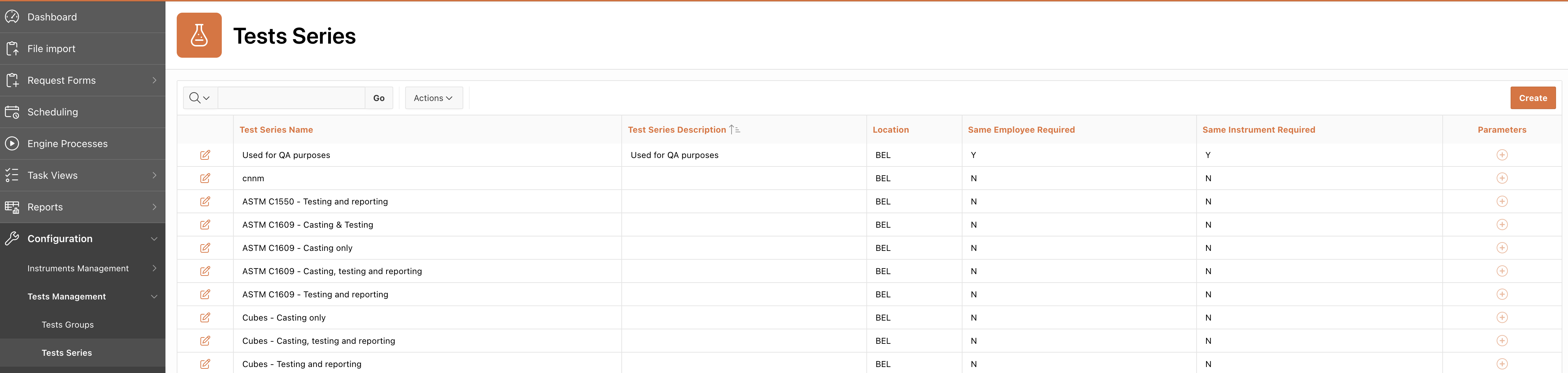 Once your Tests groups, Tests Series and Tests are created, this page allows you to build up the link between your Tests Groups & Tests Series, and your Tests Series & Tests.