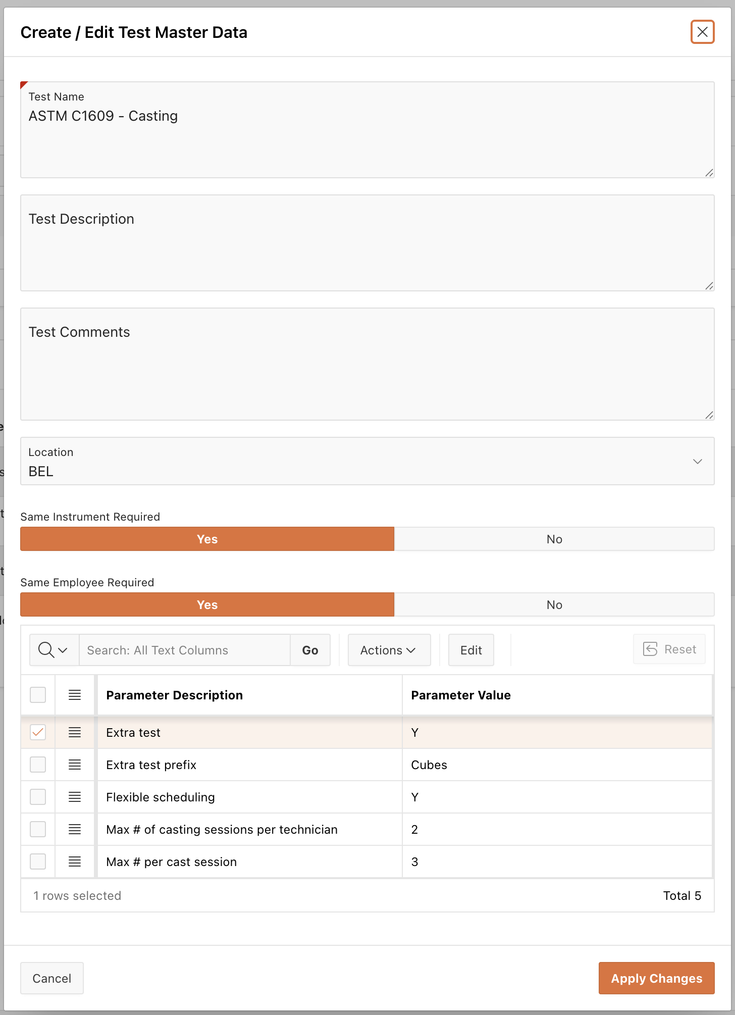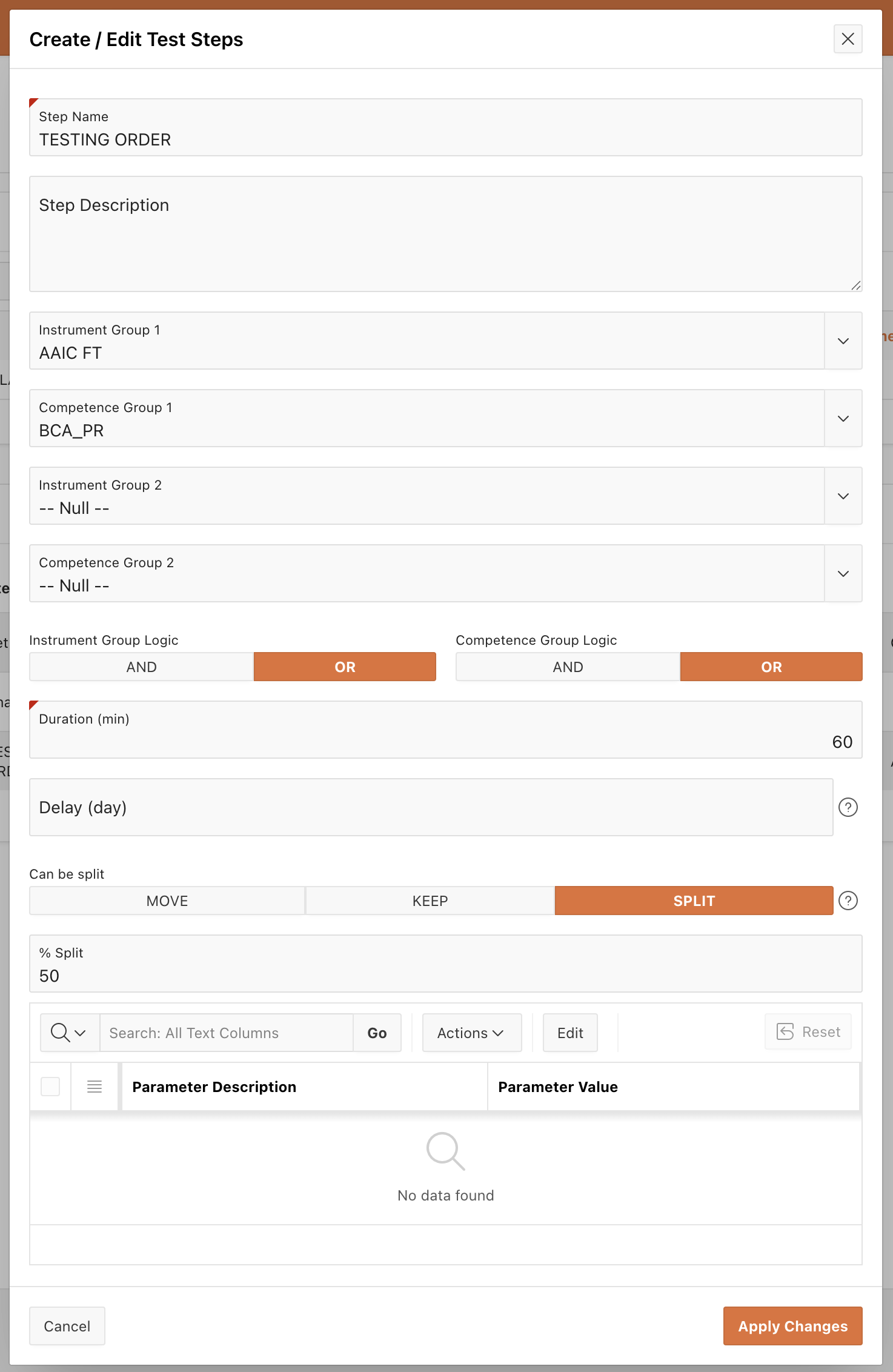| Same Instrument | Indicate if Y/N when same instrument group has been indicated in multiple Test steps Yes, if the same instrument is to be used for all Tests within a Tests Series No, if it is not necessary to book the same instrument for all Tests |
