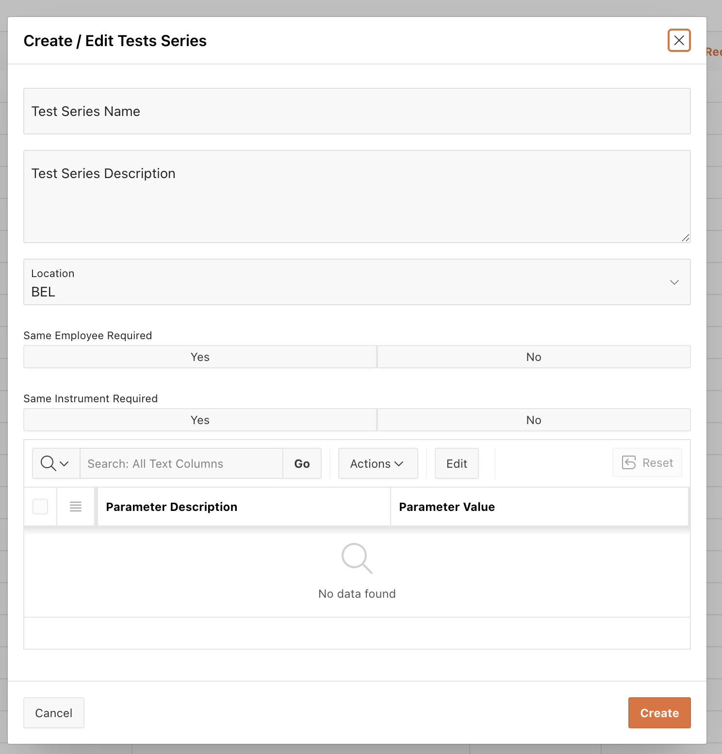 Location | Refers to the location where the Tests Series should be performed. All related Test series and Tests should be allocated to same location. |